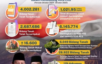 Kementerian juga menegaskan komitmennya untuk terus mendorong modernisasi layanan pertanahan, termasuk melalui digitalisasi data spasial dan integrasi sistem tata ruang. Program ini diharapkan dapat mempercepat kepastian hukum pertanahan serta mendukung pembangunan nasional yang berkeadilan.