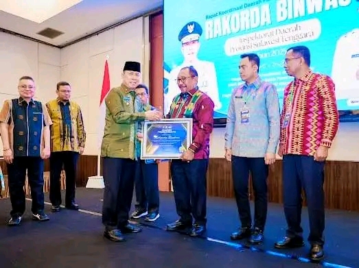 Penghargaan itu diterima langsung oleh Bupati Bombana, Ir. H. Burhanuddin, M.Si, yang hadir bersama Inspektur Inspektorat Daerah Kabupaten Bombana, Ridwan, S.Sos, M.P.W. Penghargaan diserahkan langsung oleh Gubernur Sulawesi Tenggara, Mayjen TNI (Purn.) Andi Sumangerukka.