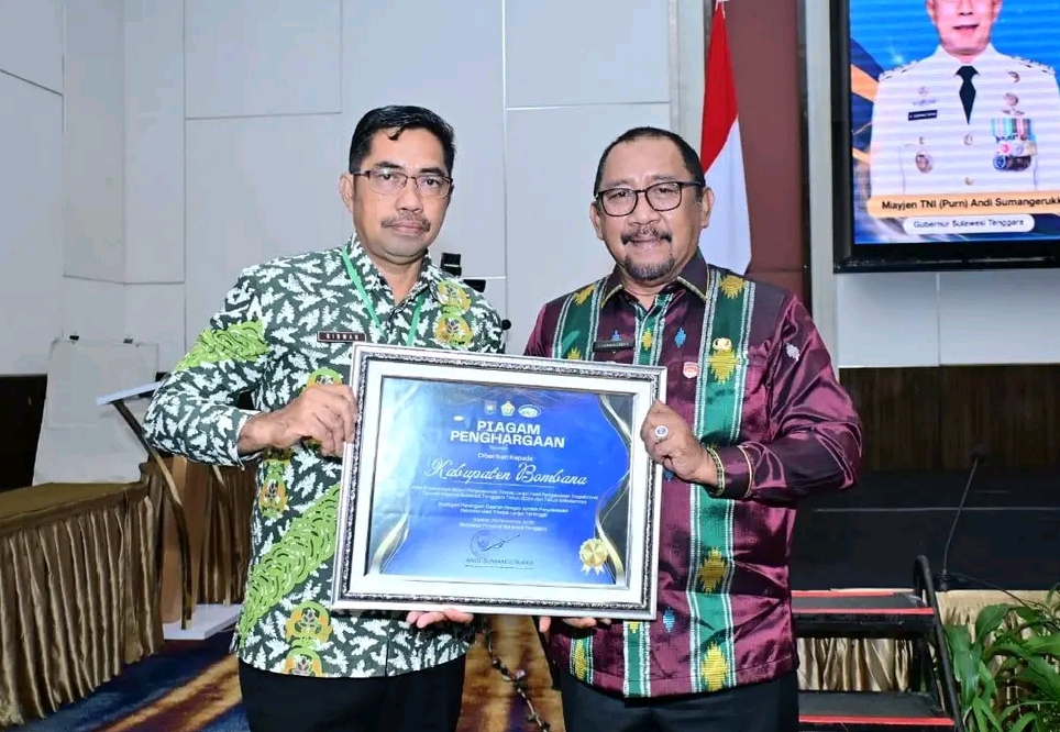 Penghargaan tersebut diterima langsung oleh Bupati Bombana, Ir. H. Burhanuddin, M.Si, yang hadir bersama Inspektur Inspektorat Daerah Kabupaten Bombana, Ridwan, S.Sos., M.P.W. Penghargaan diserahkan oleh Gubernur Sulawesi Tenggara, Mayjen TNI (Purn.) Andi Sumangerukka, di hadapan para kepala daerah dan pejabat pengawasan dari seluruh kabupaten dan kota di Sultra.