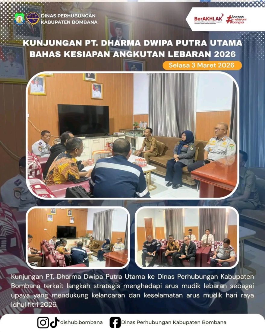 Rumbia, Infobombana.id – Menjelang arus mudik Hari Raya Idulfitri 1447 Hijriah, PT Dharma Dwipa Putera Utama melakukan koordinasi dengan Dinas Perhubungan Kabupaten Bombana untuk memastikan kesiapan layanan transportasi bagi masyarakat.