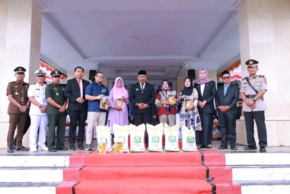 Total 8,78 ton beras dan 1.676 liter minyak goreng dibagikan kepada 1.419 Penerima Bantuan Tetap (PBT). Setiap penerima memperoleh 10 kilogram beras dan 4 liter minyak goreng, diserahkan langsung oleh Bupati.