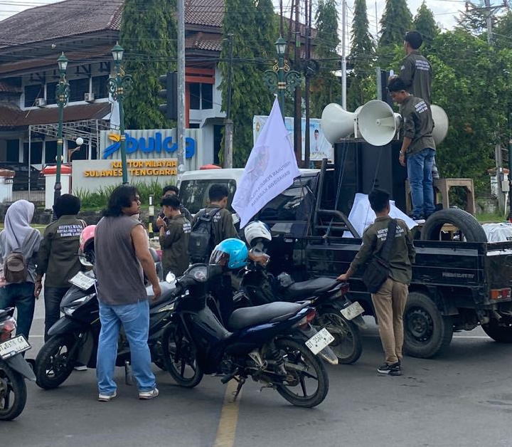 Kendari, Infobombana.id – Puluhan massa yang tergabung dalam Himpunan Pemuda Pelajar Mahasiswa Kabaena (HIPPELWANA) menggelar aksi demonstrasi di Kantor DPRD Provinsi Sulawesi Tenggara (Sultra), Senin (20/4/2026). Aksi ini menjadi penanda menguatnya tekanan publik terhadap dugaan kerusakan lingkungan akibat aktivitas pertambangan di Pulau Kabaena.