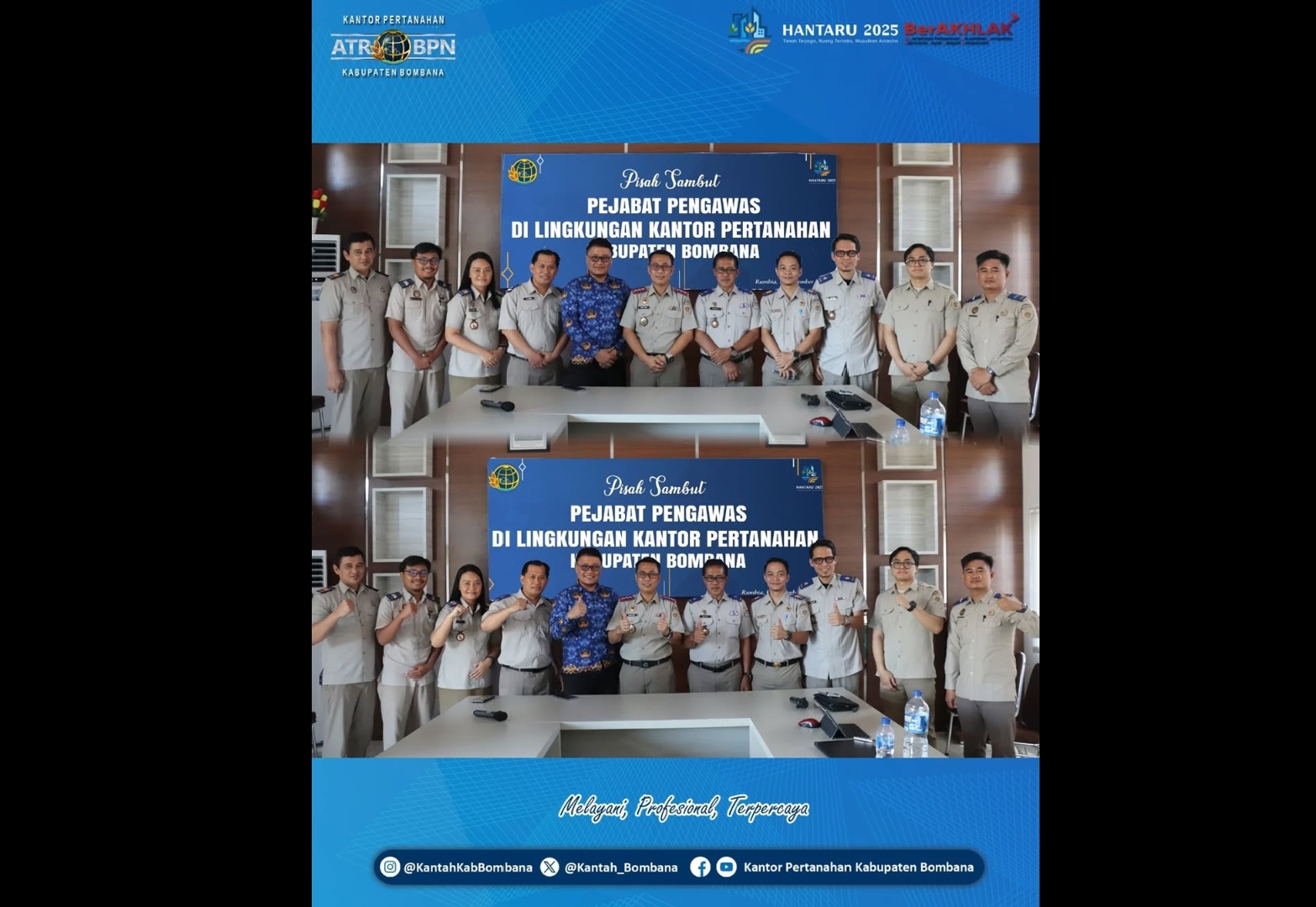 Acara pisah sambut ini menjadi momentum memperkuat komitmen internal dan memastikan keberlanjutan pelayanan pertanahan yang semakin responsif dan berkualitas.