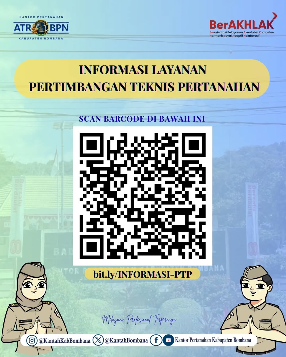 “Halo #SobATRBPN Bombana 😎 Kini informasi layanan Pertimbangan Teknis Pertanahan semakin mudah diakses. Cukup pindai barcode/QR Code untuk mendapatkan seluruh informasi yang dibutuhkan,” demikian ajakan yang disampaikan melalui kanal resmi Kantah Bombana.