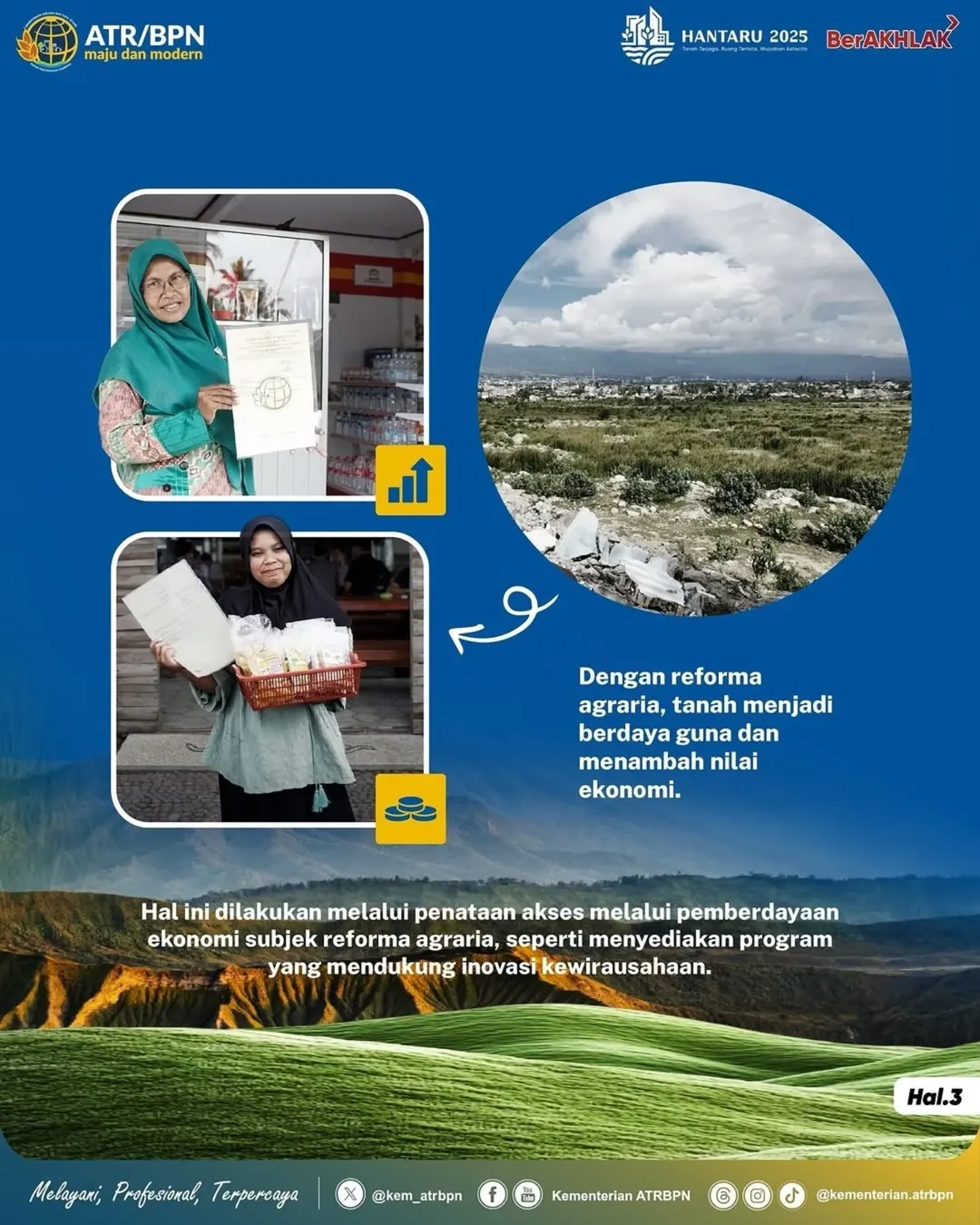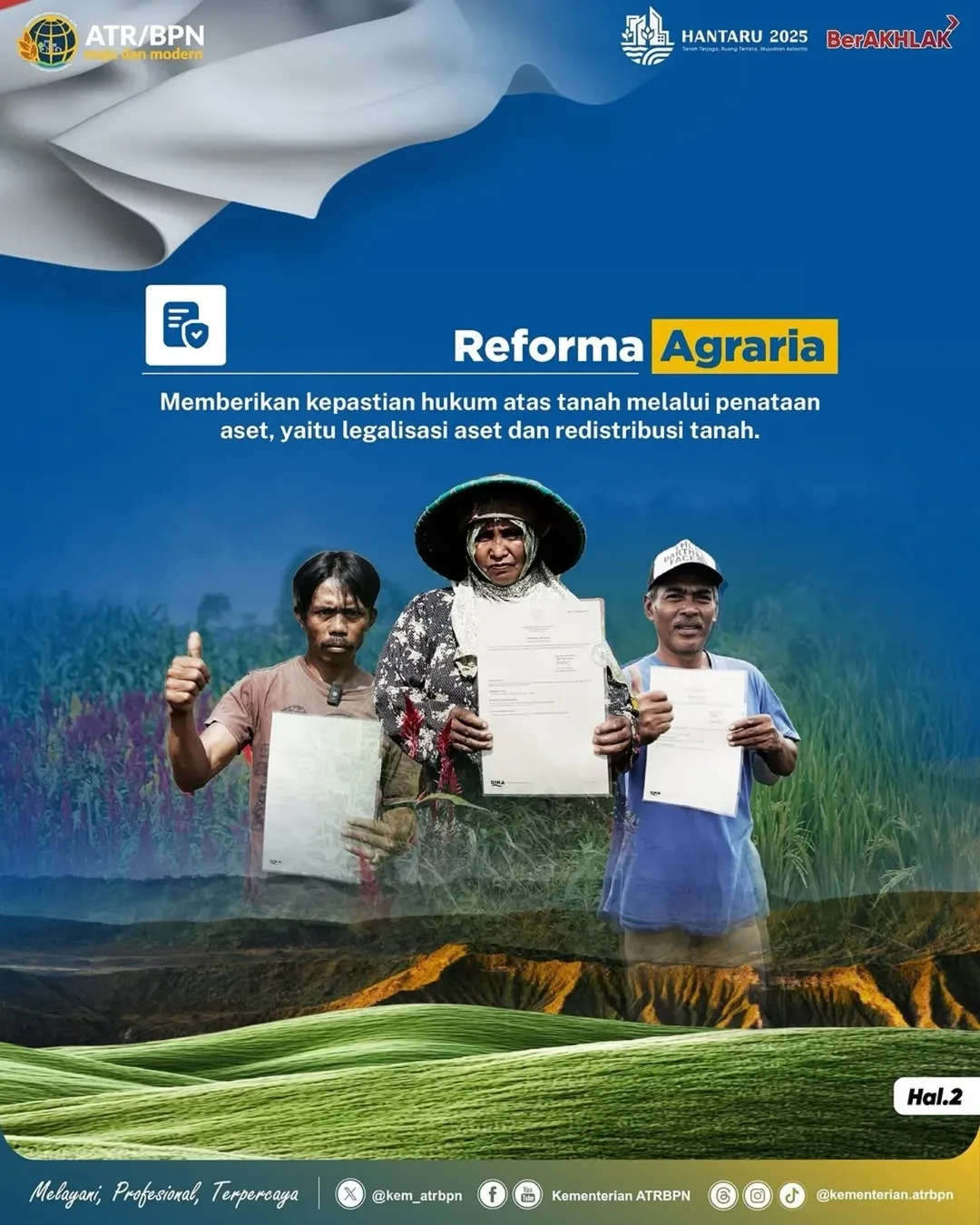 Dalam unggahan resmi yang diawali dengan sapaan “Halo #SobATRBPN”, disampaikan bahwa Reforma Agraria bukan sekadar program administratif, melainkan gerakan strategis untuk menciptakan sistem pertanahan yang adil, merata, dan berkelanjutan.