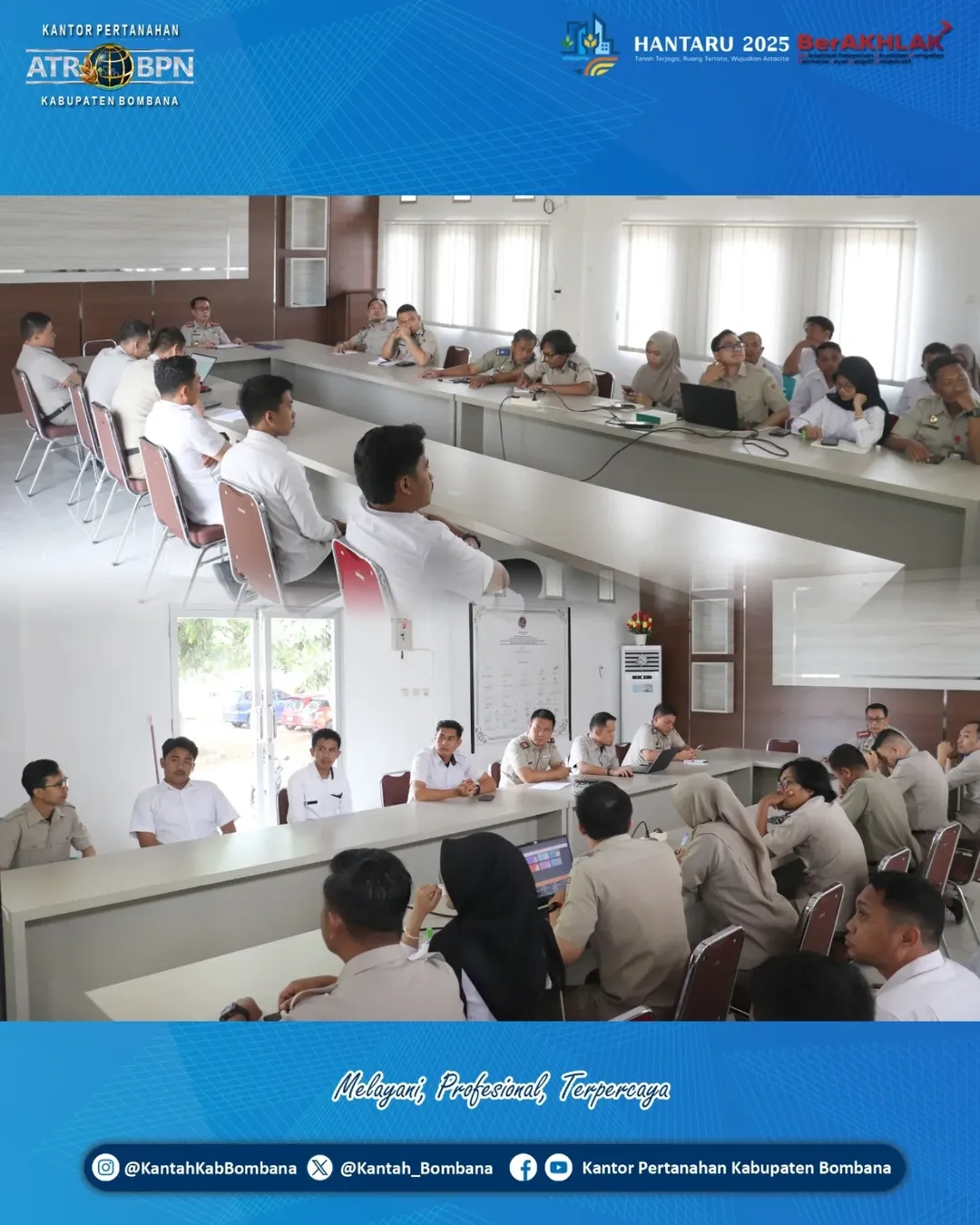 Kegiatan yang dipimpin langsung oleh Kepala Kantor Pertanahan Kabupaten Bombana, Tageli Lase, S.SiT, ini bertujuan untuk mengevaluasi capaian, mengidentifikasi kendala, dan memastikan progres pelaksanaan program berjalan sesuai target.