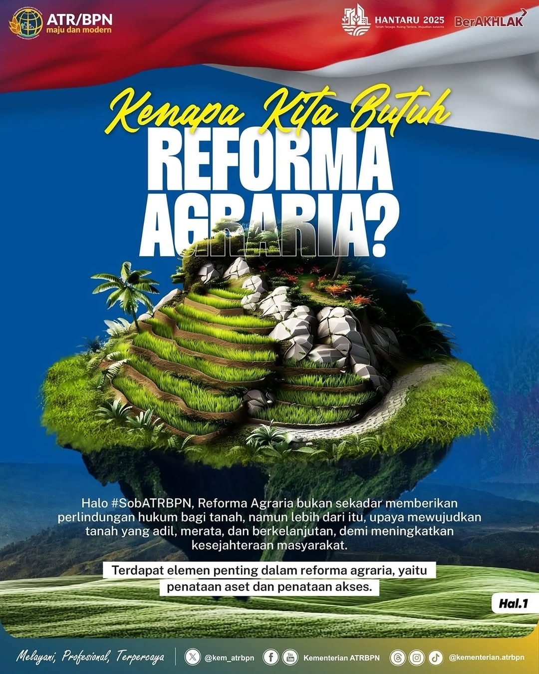 “Reforma agraria hadir untuk memastikan setiap jengkal tanah di Indonesia memberikan manfaat sebesar-besarnya bagi rakyat,” tegas Kementerian ATR/BPN.