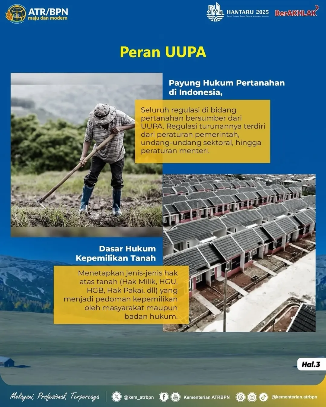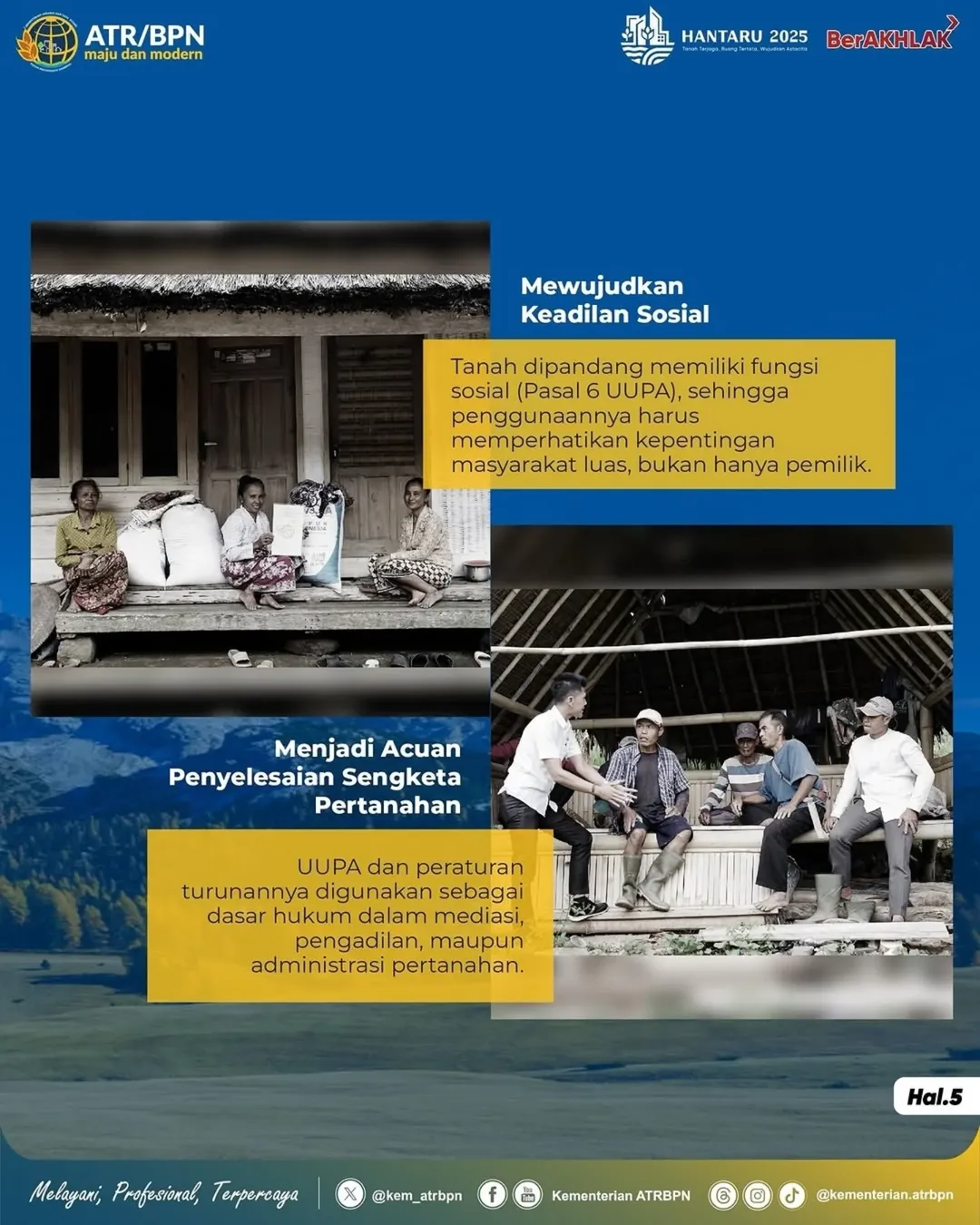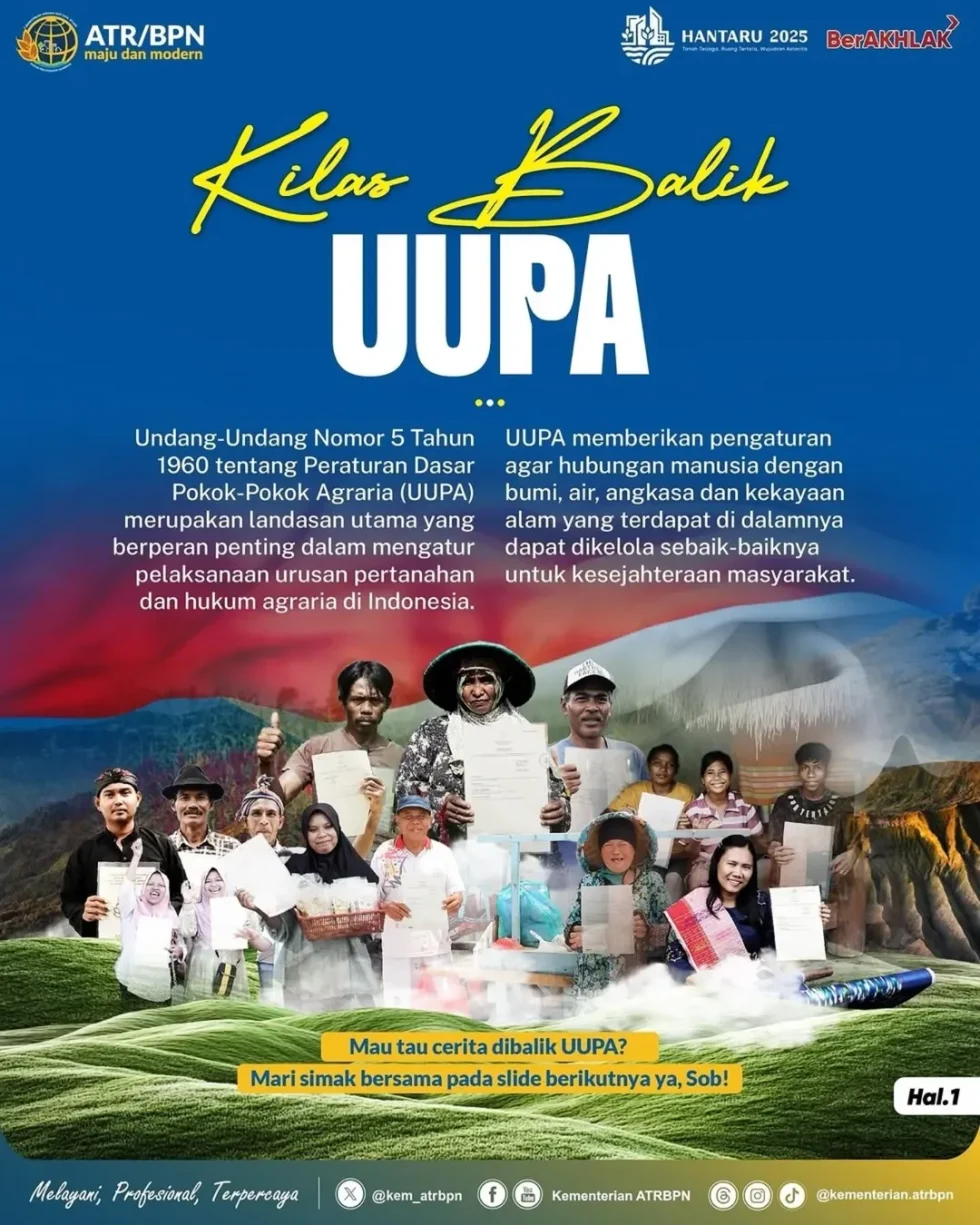 Kini, enam puluh lima tahun setelah lahirnya, UUPA tetap menjadi rujukan utama dalam tata kelola pertanahan di Indonesia. Setiap peringatan Hantaru bukan hanya momentum seremonial, tetapi juga pengingat akan cita-cita besar reforma agraria: mewujudkan tanah terjaga, ruang tertata, dan kemakmuran rakyat yang berkeadilan.