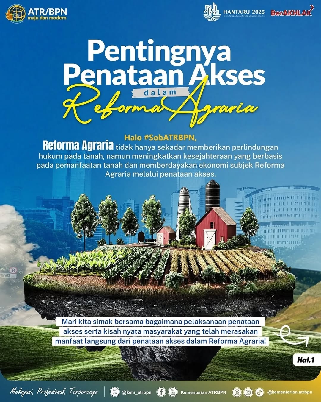 Melalui penataan akses dalam Reforma Agraria, tanah kembali kepada fungsinya sebagai sumber kehidupan, bukan sekadar komoditas. Program ini menegaskan bahwa kesejahteraan rakyat dapat tumbuh dari bawah, dari desa, dan dari tangan masyarakat sendiri yang diberi ruang untuk berdaya.