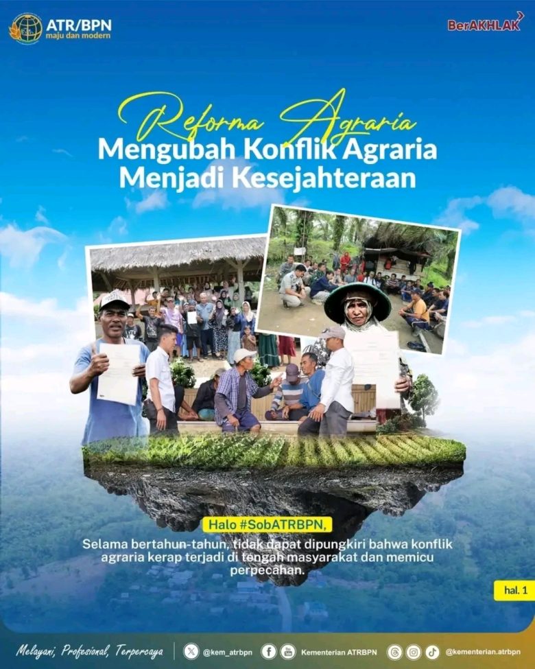 Pemerintah melalui Kementerian Agraria dan Tata Ruang/Badan Pertanahan Nasional (ATR/BPN) menempatkan Reforma Agraria sebagai salah satu instrumen utama untuk meredam konflik tersebut. Kebijakan ini dirancang bukan semata sebagai pembagian tanah, melainkan sebagai upaya struktural menata ulang sistem penguasaan, pemilikan, penggunaan, dan pemanfaatan tanah agar lebih adil dan berkelanjutan.